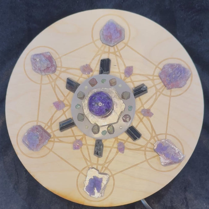 At the heart of the Dreamgate, a Charoite sphere rises like a violet star, resting on Lepidolite and a Selenite disc that radiates clarity and calm.