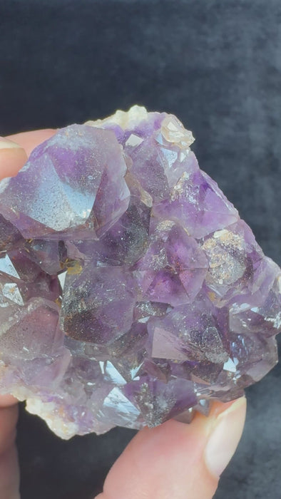 Thunder Bay Amethyst is a deep purple Canadian amethyst known for its distinctive red hematite inclusions that create a bold, fiery internal pattern.