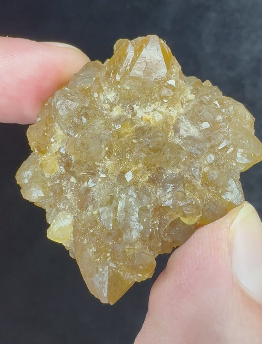 This rare Moroccan material began as sharp, spear-shaped Glauberite crystals that were later replaced molecule-by-molecule by natural Citrine, preserving the original Glauberite form while transforming completely into golden quartz.
