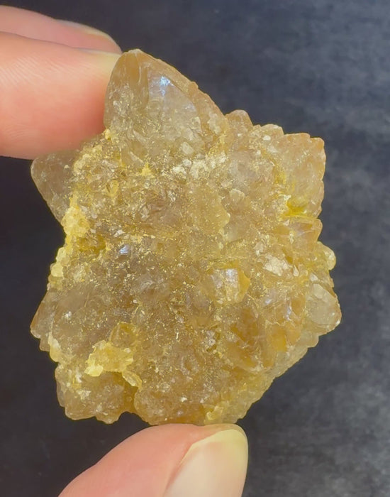This rare Moroccan material began as sharp, spear-shaped Glauberite crystals that were later replaced molecule-by-molecule by natural Citrine, preserving the original Glauberite form while transforming completely into golden quartz.