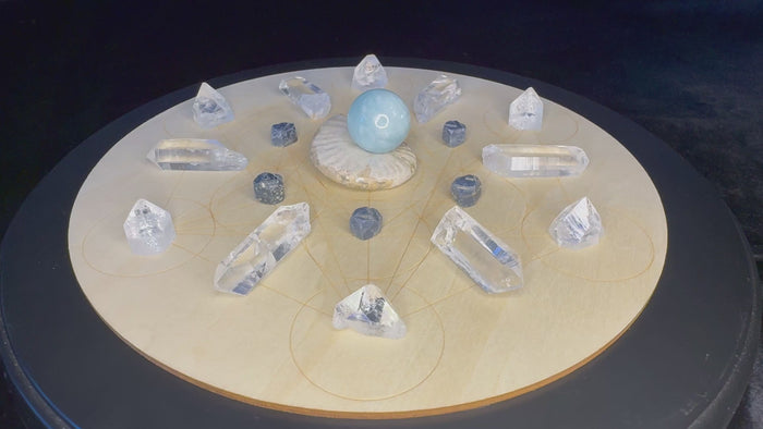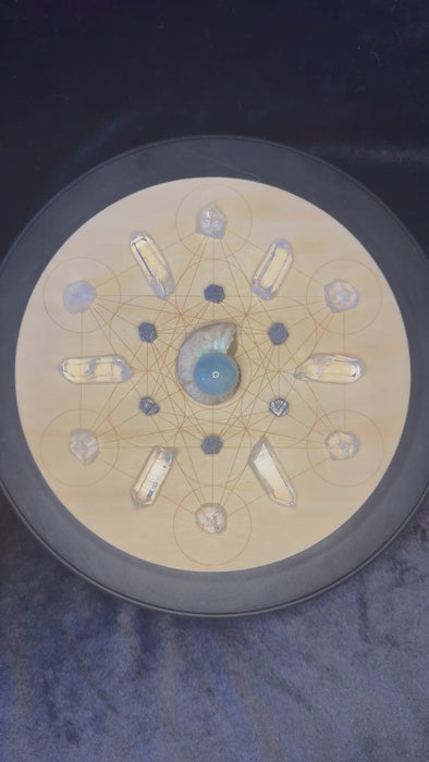 Set upon a wooden Merkaba grid, the geometry anchors higher vision into form, aligning intention with calm, sharpened awareness.